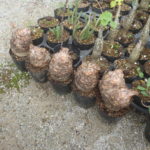 切り取った5本の子幹もポットへ植えておく、葉が出て土が落ち着いたら少し大きめの化粧鉢へ植え替えて室内に飾れるようにしたい。