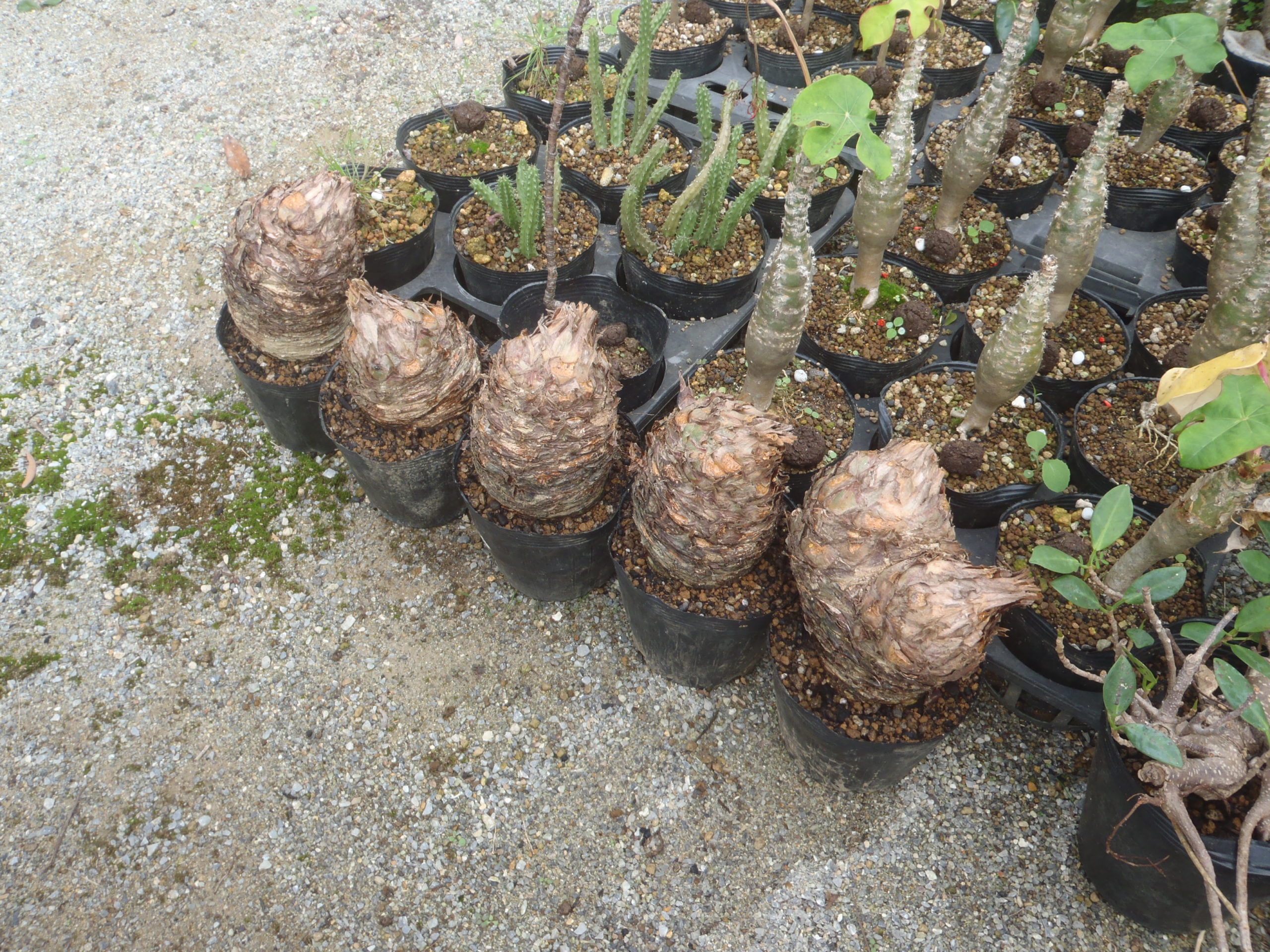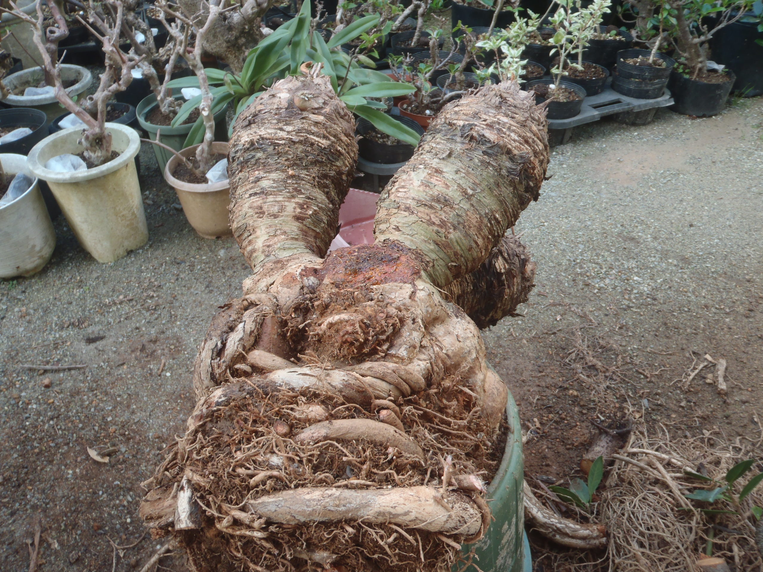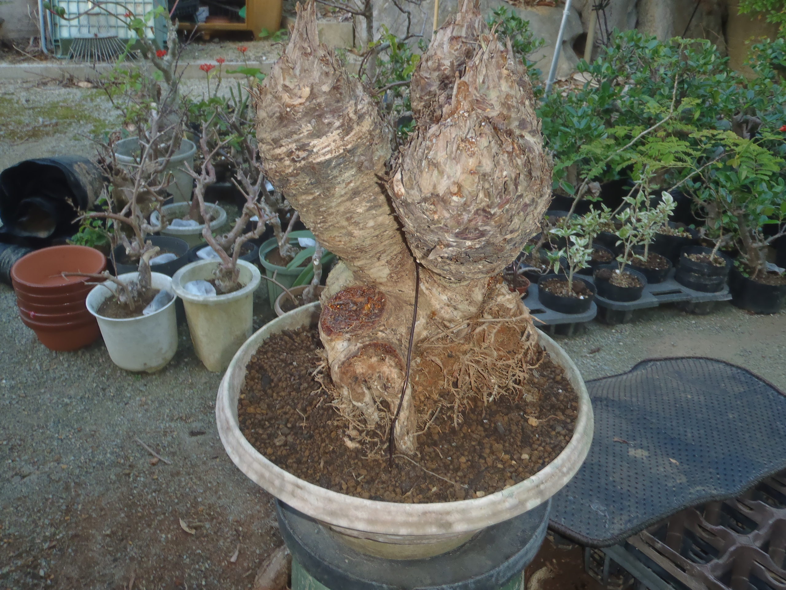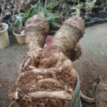 このソテツの根、超柔らかい、まるで萎びた大根のようである、土を落とすと自立しない感じだ、ハサミで何の抵抗もなく太い根が切れる。
