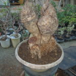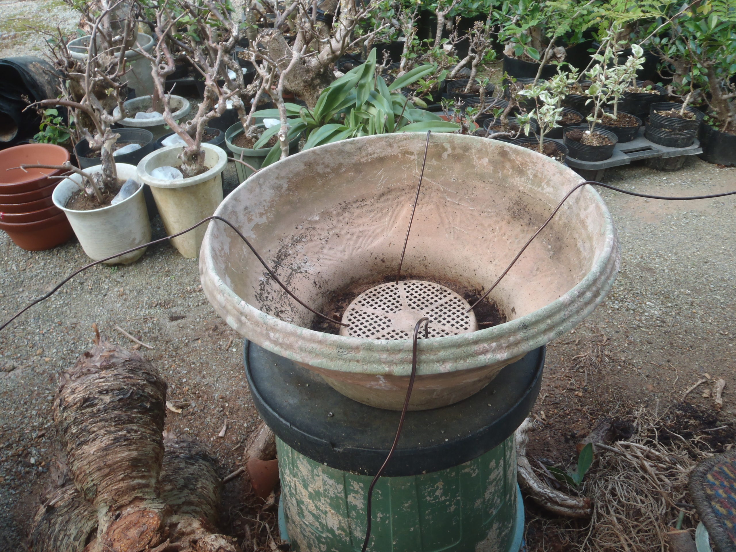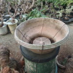 余り土を落とせない、心土は残しておく、頭が重く鉢植えにすると倒れそうである、鉢底から針金を通して盆栽見たいに固定した。